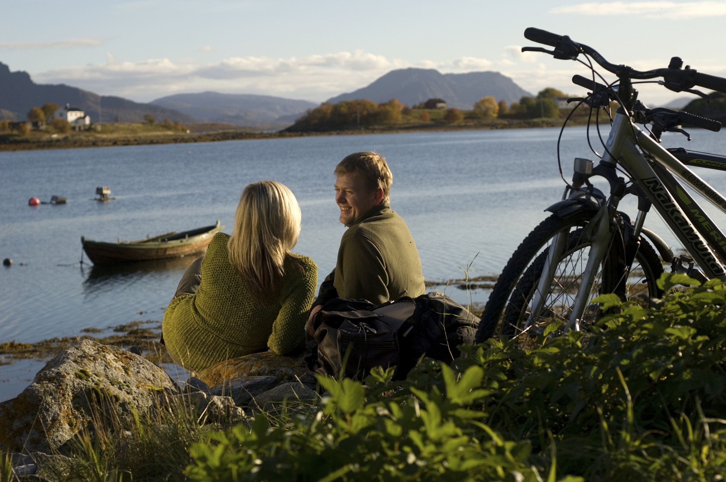 Mit einem leckeren Frühstück starten Sie in den Tag. Auf dem ersten Teil der heutigen Etappe von Hamn zum Fähranleger Gryllefjord passieren Sie den Ballesvikskar-Tunnel. Alternativ können Sie auch einen Umweg über den Gebirgspass nehmen. Die Strecke von Hamn zum Fähranleger in Gryllefjord beträgt 11 oder 17 km, je nachdem, ob Sie den Tunnel befahren oder die Passroute wählen. Vom Gryllefjord fahren Sie mit der Fähre zur Insel Andøya. Die Fahrt mit der Fähre dauert 1 Stunde und 40 Minuten. Von Andenes aus radeln Sie mit dem Fahrrad nach Bø auf die Insel Andøya (ca. 48 km). Dies ist eine einfache und angenehme Tour, wenn Sie keinen Gegenwind haben. Die Route folgt der Außenküste von Andøya, und Sie werden unter anderem den 2,5 km langen Sandstrand bei Bleik erleben. Die Straße führt teilweise am Fuß steiler Berghänge entlang und geht dann durch endlose offene Sümpfe, bevor es wieder in die Berge geht. Passieren Sie einige schöne Rastplätze entlang der norwegischen Landschaftsroute Andøya und genießen die tolle Aussicht. Abendessen und Unterkunft in Bø.