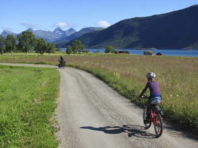 Nach dem Frühstück machen Sie sich mit Ihrem Rad zum nahegelegenen Fähranleger Brensholmen (ca. 7 km). Von dort startet die Fähre nach Botnhamn in Senja. Senja ist Norwegens zweitgrößte Insel. Geheimnisvolle Buchten, in denen der feine, weiße Korallensand im Sonnenlicht schimmert, zu Füßen liegend des kristallklaren Meeres. Ein paar Kilometer weiter thronen schroffe Berge, die sich wagemutig in die Tiefen des Meeres stürzen. Es sind Impressionen wie aus einem Märchenbuch, vereint auf einer Insel.